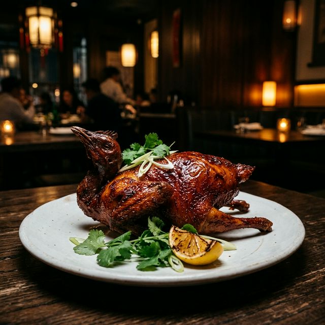 Whole crispy-skinned squab deep-fried to a dark lacquer finish. Tender, rich, and gamey — a true Cantonese banquet classic and one of Dong Kee’s most-reordered dishes.